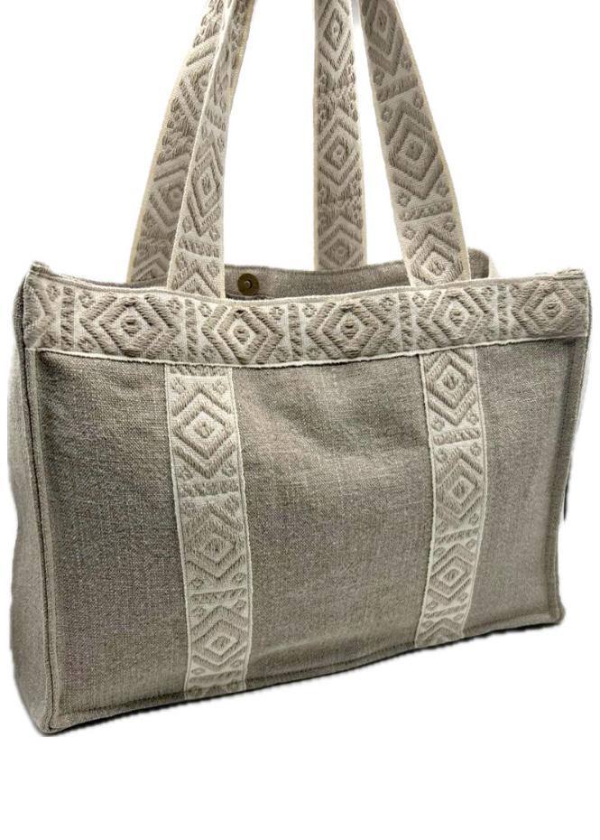 La nostra borsa in lino, morbida, capiente, versatile. Perfetta per lo shopping o per il mare. Realizzata completamente a mano, curata nei dettagli con materiali di pregio. Disponibile in 2 misure: 31x38 e 38 x 45