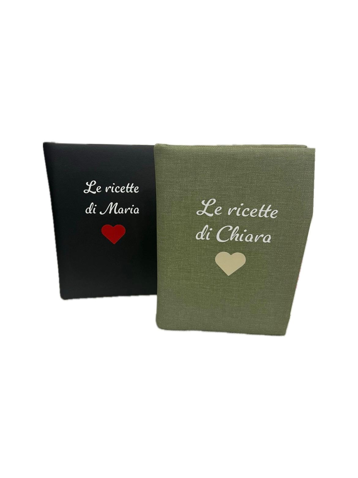 Carmela, un nome, un programma. Il nostro ricettario porta il nome della più grande cuoca che abbiamo mai conosciuto: NONNA CARMELA! Il nostro ricettario diviso per sezioni ( dall’antipasto al dolce ) nasce come oggetto ma diventerà per voi un sentimento… quello che ognuno di noi mette nelle ricette del cuore!!! Personalizzabile e disponibile in diversi colori e tessuti.